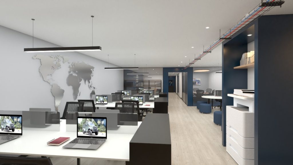 Armor International Ubicación: Bogotá, Colombia. Área diseñada y construida : 400 m2. Alcance: Diseño y Construcción. Proyecto: Oficinas corporativas. Cliente: Armor International / 2024
